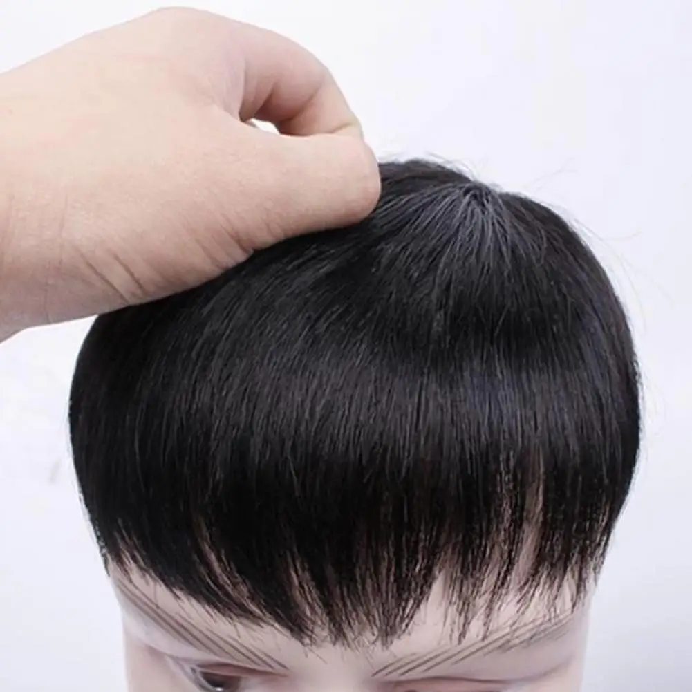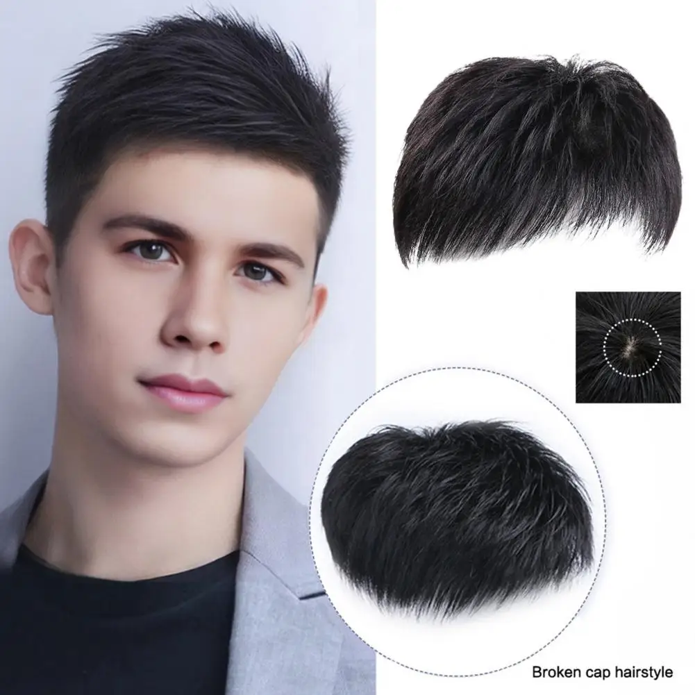 Men Short Straight Hairpiece with Bangs Bald Spots Gray Hair Coverage Natural High Temperature Fiber Male Black Synthetic Hair Wig