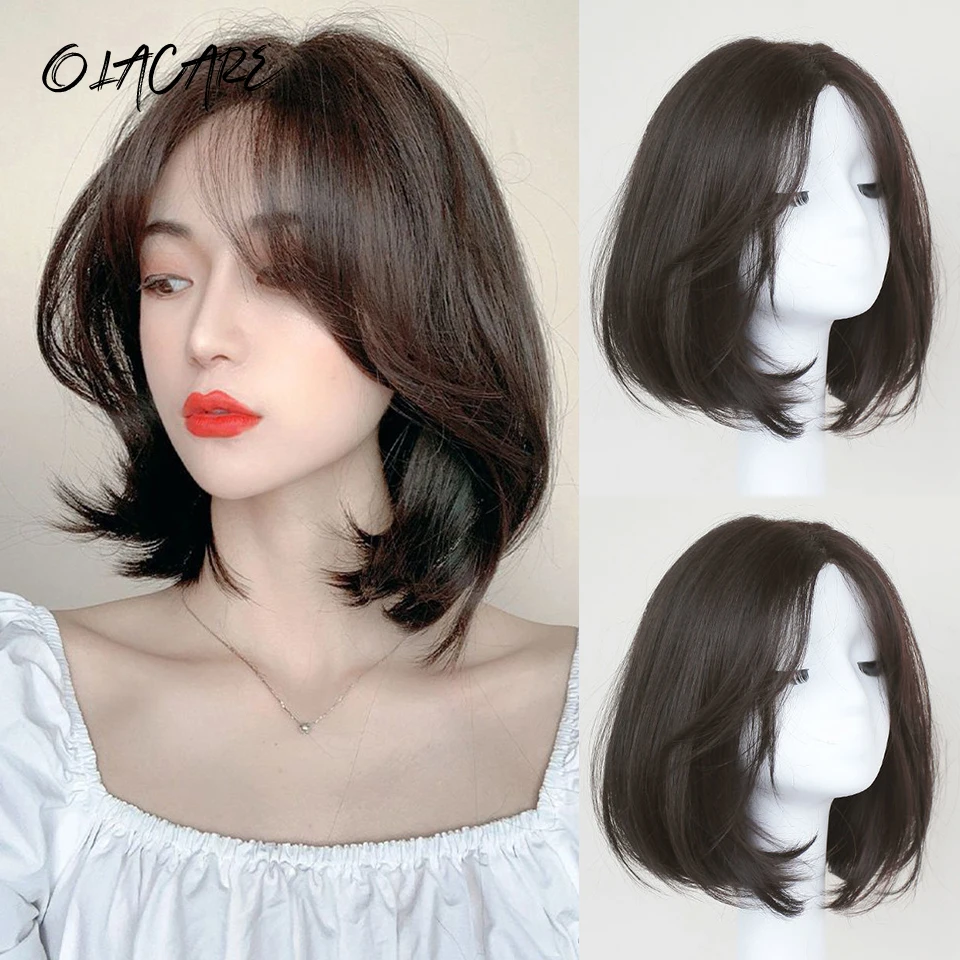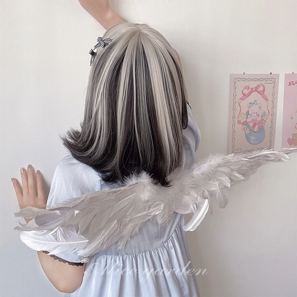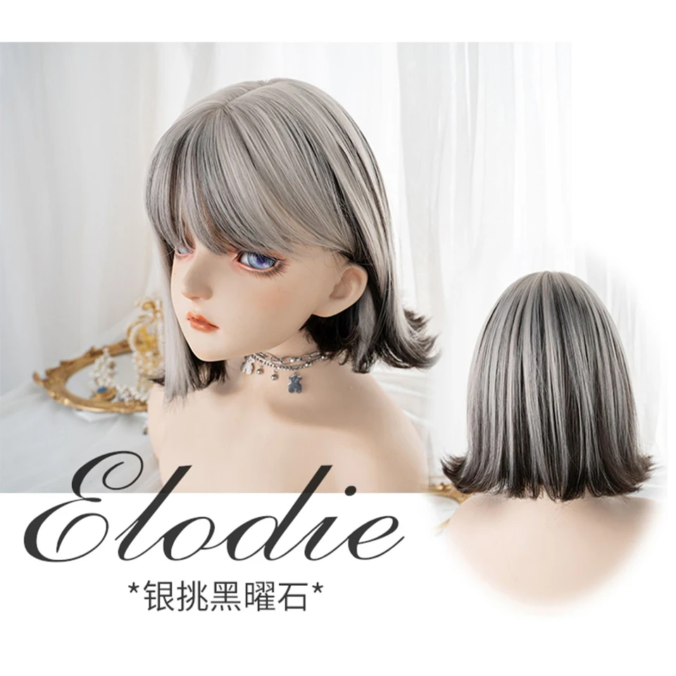 OLACARE Short Black Gray Highlight Bangs Synthetic Wig Lolita Cosplay Fashion Daily High Temperature Resistant Wig Woman